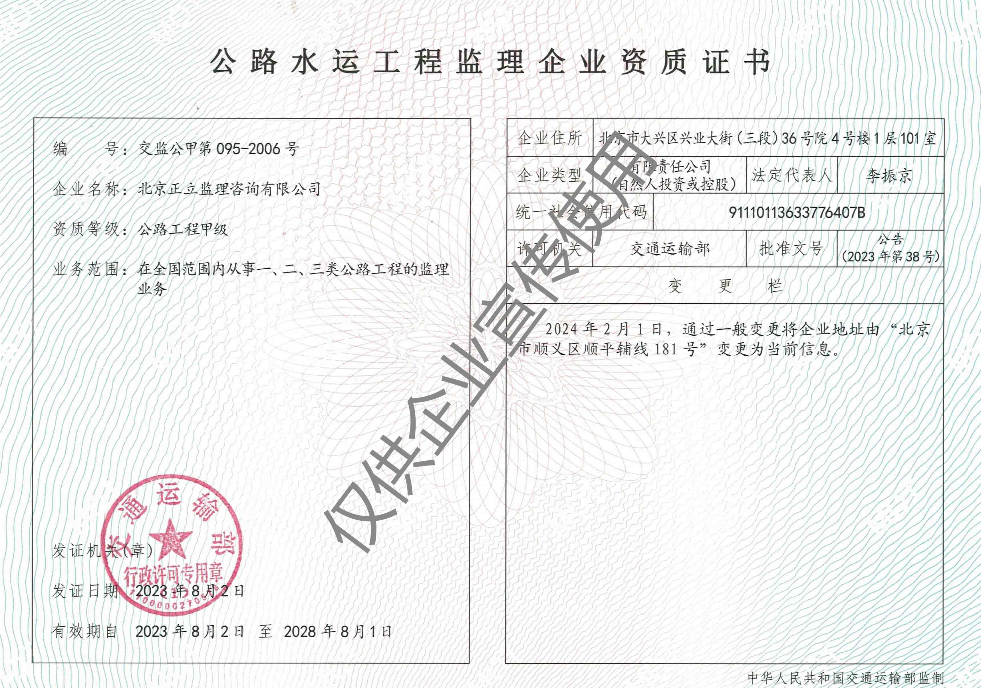 北京正立監(jiān)理咨詢有限公司成立于1998年7月1日,其前身隸屬于北京市公路質(zhì)量監(jiān)理站。具有獨(dú)立法人資格,是獨(dú)立核算、自負(fù)盈虧的經(jīng)濟(jì)實(shí)體。企業(yè)經(jīng)營范圍:公路工程監(jiān)理、交通工程監(jiān)理、市政公用工程建設(shè)監(jiān)理、工業(yè)與民用建筑工程監(jiān)理、工程監(jiān)理咨詢、技術(shù)咨詢、技術(shù)培訓(xùn)等。